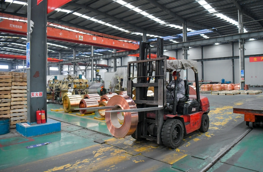 今年8月,最新一批次60余吨高精度紫铜带从江西mg冰球突破豪华版铜业科技有限公司(以下简称“mg冰球突破豪华版铜科”)仓库出发,被运往位于深圳的弗迪动力有限公司。不久后,这批高性能纯铜带材将以零部件的形式,出现在比亚迪各型号新能源汽车上。